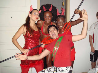 Depois disso, vieram Hilton e Érico, meus parceiros de muuuuuuuitos blocos. Saíamos juntos no Acadêmicas, Timba, Pinel (com Ivete e Timbalada)… Tudo na base da Fanta. Depois a cachaça entrou em nossas vidas, todo mundo migrou pra Os Mascarados e nos juntamos a outra gangue… Igor, Rodrigo, Karol, Débora, Jarbas, Ricardo… com quase todo mundo de arte. Era praticamente um bloco de conhecidos. Vestíamos nossas fantasias e íamos atrás de Margareth Menezes. Até que a maluca “diz que” bebeu o tal do chá e desistiu do bloco. Problema dela.
